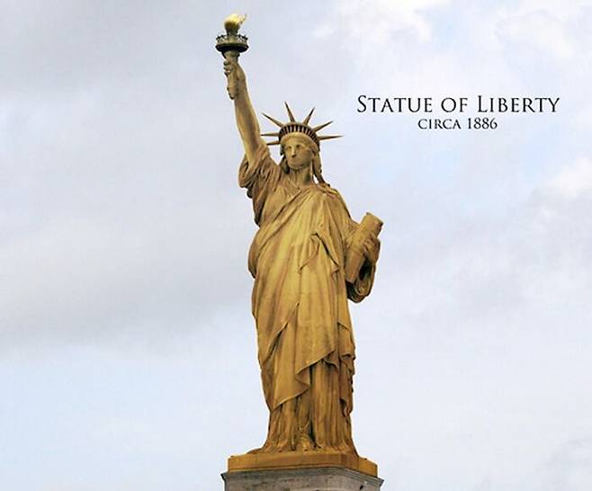 뉴욕의 랜드마크인 자유의 여신상은 1885년 처음 미국으로 건너왔다. 지금의 리버티섬에서 자유와 민주주의를 상징하는 구조물로 우뚝 서게 된 것은 이듬해인 1886년부터인데, 처음 모습은 지금과는 많이 달랐다. 구조 자체의 이야기가 아닌 색깔의 이야기다. 자유의 여신상은 미국 독립전쟁 승리 100주년을 기념으로 프랑스가 선물한 건축물이다. 에펠탑을 만든 귀스타브 에펠 등이 설계와 구조에 참여했는데, 80톤이 넘는 구리를 녹여 만들었다. 여신상의 겉면엔 300개가 넘는 구리판이 있는데 이렇다 보니 초기 구조물은 구리의 원래 색인 붉은색을 띈 것이다.