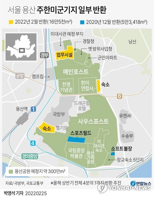 미국 측은 2020년 12월 스포츠필드와 소프트볼경기장 등 2개 구역 5만3천418㎡를 반환한 데 이어 지난달 말 메인포스트 2개 구역과 사우스포스트 1개 구역 등 16만5천㎡를 반환했다.