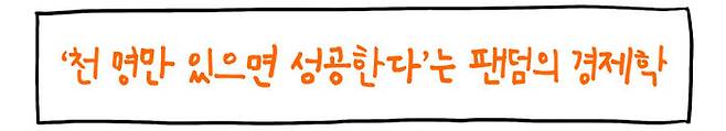 유명 과학기술 문화 잡지 <와이어드>를 공동 창간한 경영전문가 케빈 캘리는 2008년 디지털 시장에서 생계를 유지하기 위해서는 수백 만 명의 고객이나 수백만 달러가 아니라 ‘천 명의 확실한 팬’이라는 내용의 에세이를 썼습니다. 이 ‘확실한 팬’은 그야말로 당신이 생산한 모든 것을 소비하는 사람들입니다.
