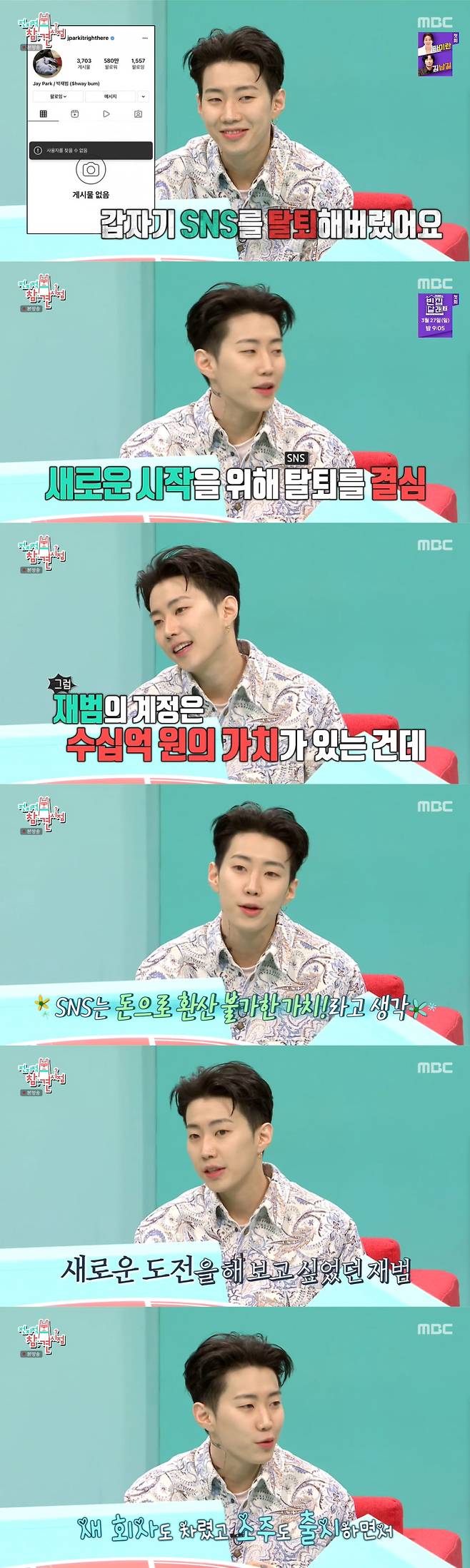 박재범 "'수십억가치' 580만 SNS 탈퇴, 새 도전 위해"→"새 앨범, 아이유가 먼저 연락"('전참시')[종합]