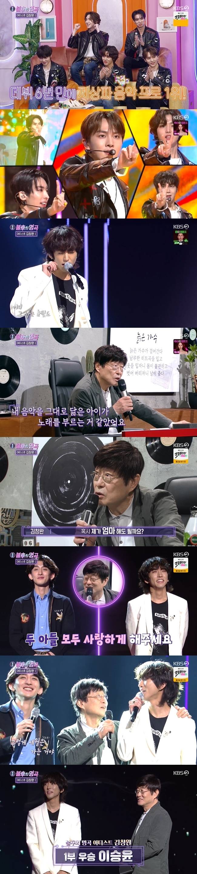 이후 최정훈과 이승윤은 존경의 마음을 담아 ‘청춘’을 불렀고, 김창완은 자리에서 일어나 무대에 올라 두 사람과 함께 훈훈한 무대를 꾸몄다. 판정 결과 이승윤은 1부 우승을 거뒀다.