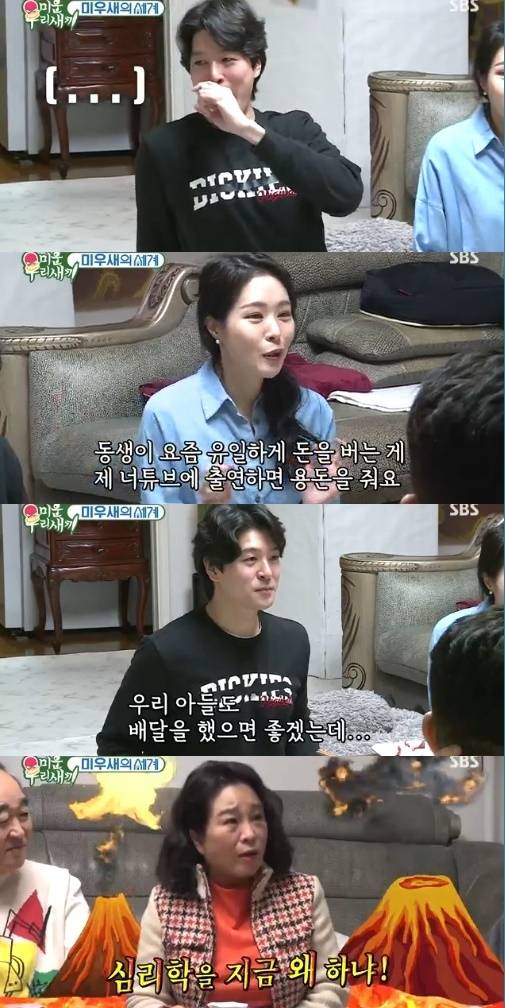 미자는 "동생이 유일하게 돈을 버는 게 제 유튜브에 출연하면 용돈을 준다. 자기 방에서 찍고 5만원을 줬다. 딜을 해서 요즘 살아가고 있다"고 했고 장영은 "방을 너무 일찍 공개했다"고 너스레를 떨었다.