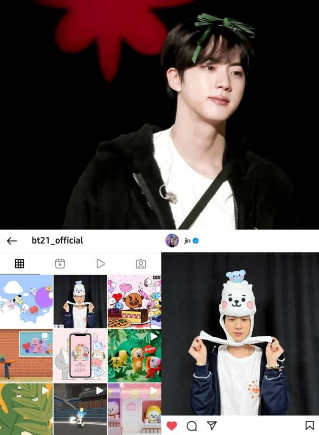 한편 지난 15일 라인프렌즈(LINE FRIENDS) BT21 공식 계정에 알제이 모자를 쓴 진의 인스타 사진이 게시되어 화제를 모았다.