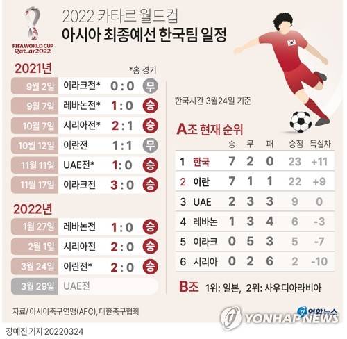 [그래픽] 2022 카타르 월드컵 아시아 최종예선 한국팀 일정
