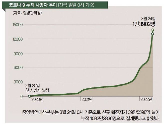 3년째에 접어든 지금, 우리는 팬데믹이란 터널의 어디쯤 와 있을까. 방역당국은 유행의 정점에 와 있는 것으로 보고 있다. 고재영 질병관리청 대변인은 지난 3월 22일 방대본 백브리핑에서 “연구진이 종합한 기존 예측보다는 다소 많은 확진자가 발생했고, 소폭으로 감소하는 중이라 현재 정점 구간에 있는 것으로 판단한다”고 밝혔다.