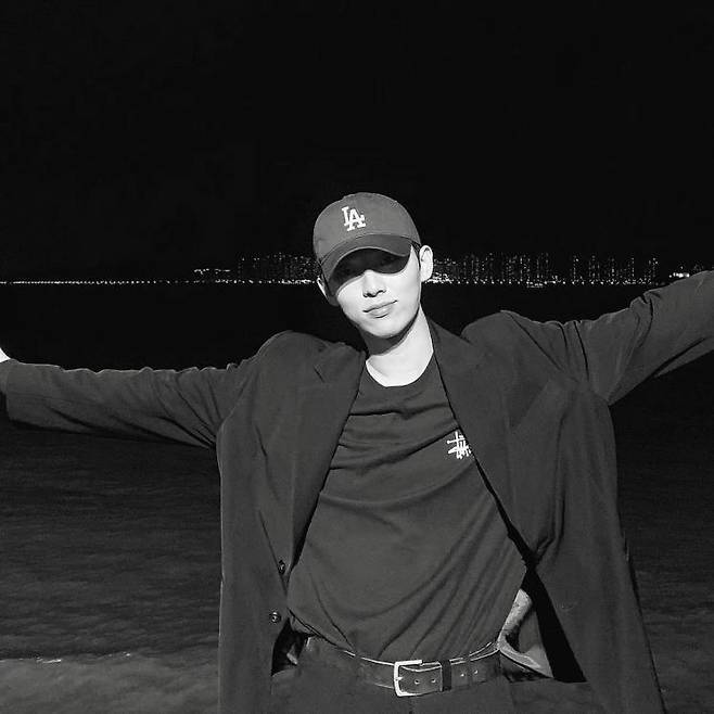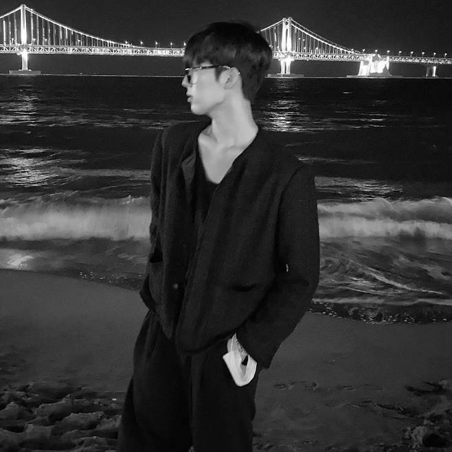 모델 포스가 풍기는 흑백사진! 블랙 컬러의 옷을 시크하게 소화해내는 모습이죠? 사진 배경을 보아하니, 최현욱은 감성 가득한 밤바다를 좋아하는듯해요.