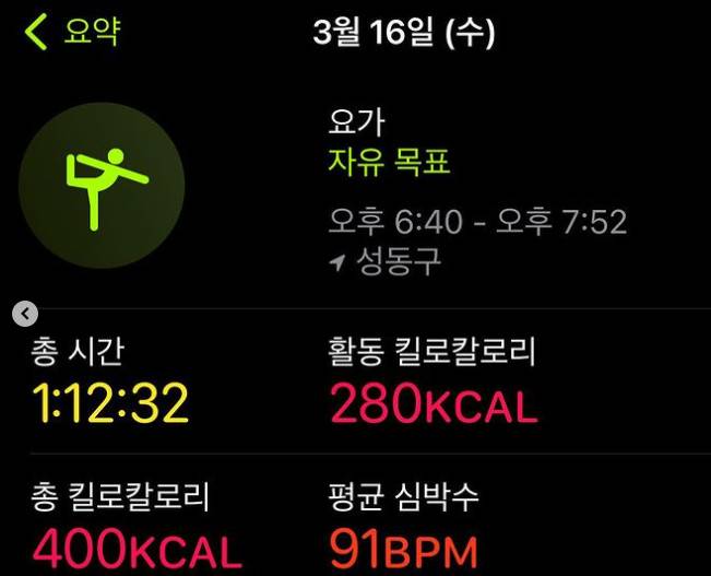 또 다른 사진 속 김도균은 요가를 통해 소모한 칼로리를 공개했다.