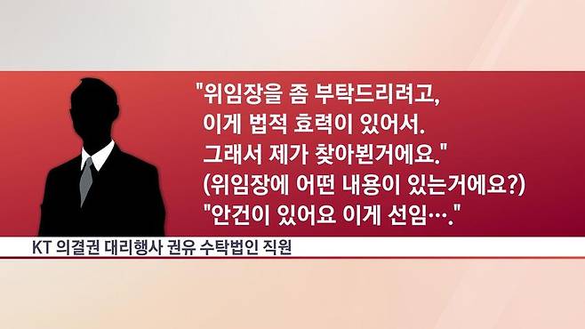 KT는 "일반 주주들에게 의결권 행사를 안내하기 위한 차원으로 수탁 업체를 활용했다"면서 "직원들에게도 의결권 위임을 강요하지 않았다"고 밝혔습니다.