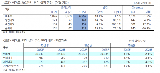 박종렬 현대차증권 연구원은 “별도 기준 이마트 사업부문의 영업이익이 전년동기대비 17% 감소할 것으로 예상되지만 연결 자회사들의 실적개선이 주효했다”며 “SSG.COM의 영업손실 폭 확대에도 불구하고 스타벅스코리아의 연결 손익 추가가 연결 영업이익 증가의 주된 이유”라고 말했다.