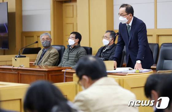 (제주=뉴스1) 오미란 기자 = 29일 오전 제주지방법원 제201호 법정에서 제주지법 형사합의 제4-2부(재판장 장찬수 부장판사) 심리로 제주4·3 수형인 희생자 20명 직권재심사건에 대한 공판이 열리고 있다.2022.3.29/뉴스1