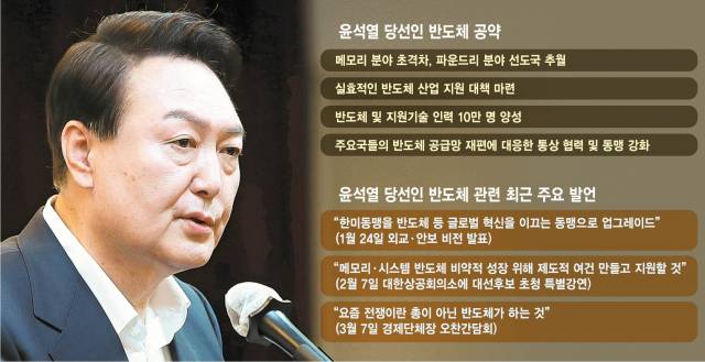 윤석열 대통령 당선인은 후보 시절부터 반도체에 애정을 많이 보였다. “한미 동맹을 반도체 등 글로벌 (산업의) 혁신을 이끄는 동맹으로 업그레이드하겠다” “요즘 전쟁은 총이 아닌 반도체가 한다” 등의 발언을 했다. 미국과 중국 간 패권 전쟁의 중심에 있는 반도체에 대해 산업적 관점을 넘어 국가의 명운이 달린 외교·안보적 측면으로도 접근해야 한다는 절박함이 묻어난다.