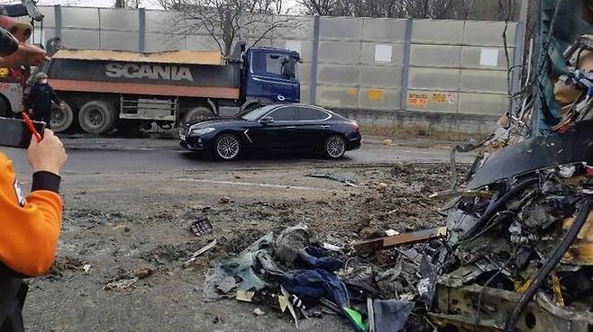 자유로서 드라마 촬영 버스-트럭 추돌..1명 사망 · 10명 부상