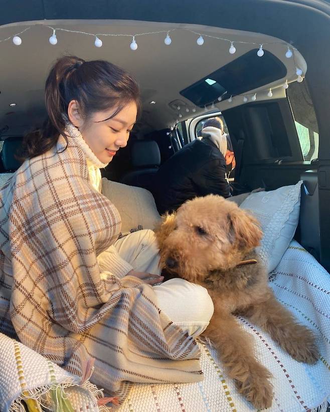 사진 속 김연아는 광고 촬영장으로 보이는 현장에서 차 안에 앉아 휴식을 취하고 있다. 뾰로통한 표정으로 한 곳을 응시하며 귀여운 매력을 드러낸 김연아는 강아지를 흐뭇하게 바라보며 청순한 매력을 드러냈다.