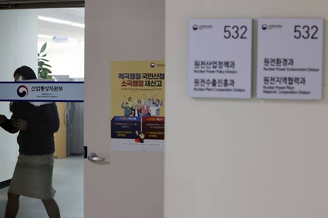 | ▲ 이른바 '산업부 블랙리스트 의혹' 사건을 수사하는 검찰이 산업통상자원부에 대한 압수수색을 진행했다. 25일 정부세종청사 산업부 원전 관련 부서에서 관계자들이 분주하게 움직이고 있다. |