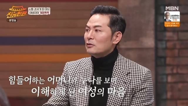 이어 "만약 부모님이 화목했다면 저는 강사가 안 됐을 것 같다. 엄마가 아버지 때문에 힘들게 사시는 걸 봐 그것으로 인해 자식들이 생각하게 되는 생각의 깊이가 있다고 본다"고 말했다. (사진=MBN '신과 한판' 캡처)