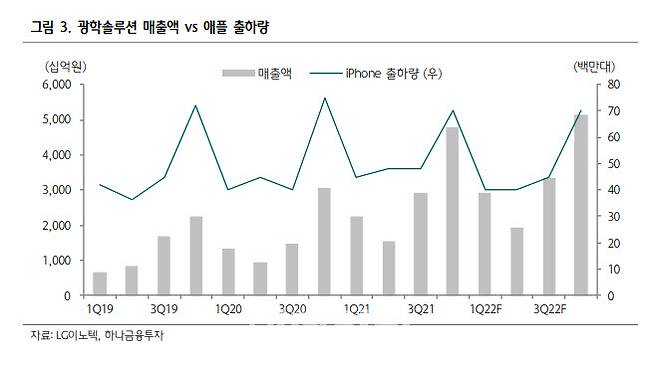 이어 “하나금융투자는 아이폰 차기작의 2022년 하반기 물량이 전작 대비 8% 감소할 것으로 추정 중이다. 다만 4800만 화소 카메라 탑재로 인해 평균 판매 가격이 상승해 2022년 하반기 광학솔루션 매출액은 전년 동기 대비 10% 증가할 것”이라며 “평균판매가격은 현재 추정치 대비 상향 여력이 상존한다. 2023년에는 폴디드 줌 탑재로 추가적인 판매가격 상승도 가능할 것으로 예상돼 중기 실적 모멘텀도 확보했다”고 판단했다.