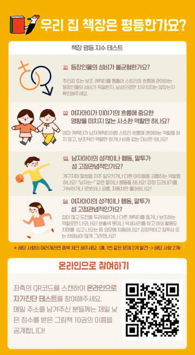 2018년 말부터 2019년 초까지만 해도 우리나라에 성평등 동화책이 그리 많지 않았어요. 책이 없다기보다 그러한 시각에서 발굴을 안 해 눈에 띄지 않았던 거죠. 여성가족부가 2019년에 '나다움어린이책’이라는 그림책 사업을 하면서 출판계에서 관련 책들이 나오기 시작했어요. 편집자들도 "육아 장면에 아빠를 같이 그려주세요" "핑크색, 파랑색 말고 다른 색을 사용해주세요" 같은 피드백을 해서 최근 진짜 많이 바뀌었어요.