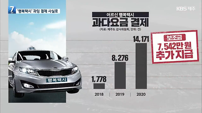 어르신 행복택시의 요금 과다 결제행위 건수는 사업 첫해인 2018년, 1천700여 건이었지만 이듬해 8천200여 건으로 무려 4배 이상 껑충 뛰었고, 지난해에는 1만 4천 건을 넘어섰습니다.