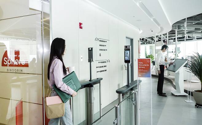 SKT 직원은 거점오피스로 출근할 때 별도 출입카드 없이 AI(인공지능) 기반 얼굴 인식 기술로 입장할 수 있다. 마스크를 쓴 상태에서도 얼굴을 식별할 수 있다는 게 이 회사의 설명이다.