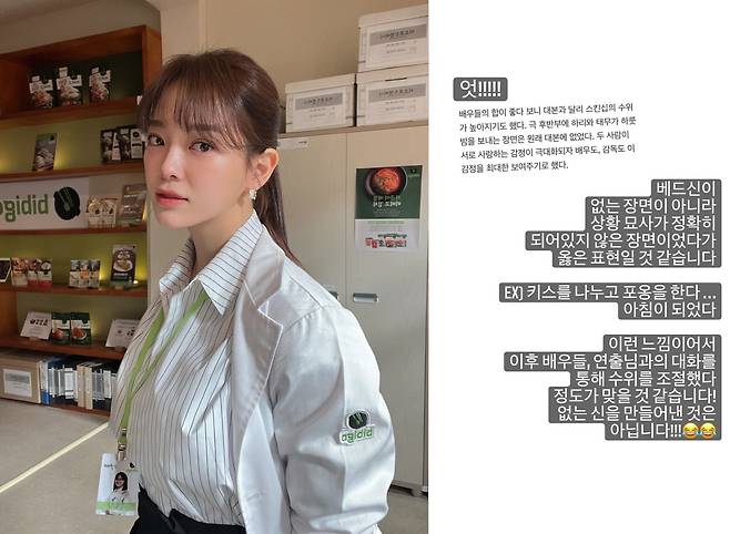 이런 느낌이어서 이후 배우들, 연출님과의 대화를 통해 수위를 조절했다 정도가 맞을 것 같습니다! 없는 신을 만들어낸 것은 아닙니다!!!