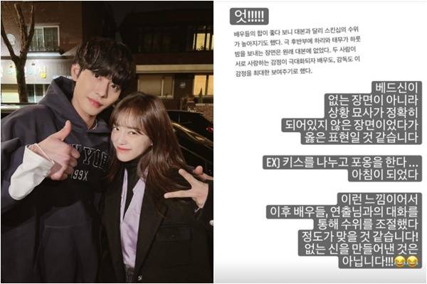 가수 겸 배우 김세정은 7일 오후 자신의 인스타그램 스토리에 "엇!!!! 베드신이 없는 장면이 아니라 상황 묘사가 정확히 되어있지 않은 장면이었다가 옳은 표현일 것 같습니다"라며 "EX) 키스를 나누고 포옹을 한다...아침이 되었다 이런 느낌이어서 이후 배우들, 연출님과의 대화를 통해 수위를 조절했다 정도가 맞을 것 같습니다! 없는 신을 만들어낸 것은 아닙니다!!!"라는 글을 게재했다.
