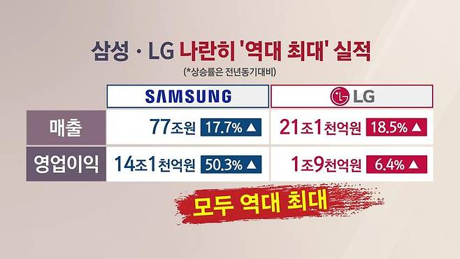기업들 소식 다양하게 짚어보겠습니다. 삼성전자와 LG전자가 나란히 역대 최대 실적을 냈습니다. 분명 시장 예상치보다 좋았는데, 주가 반응은 시원찮았습니다. 이런 가운데 러시아의 우크라이나 침공 여파가 본격화되면서 현대차와 기아의 러시아 수출이 급감했습니다. 이광호 기자 나와 있습니다. 우선 실적부터 간단하게 정리해보죠.