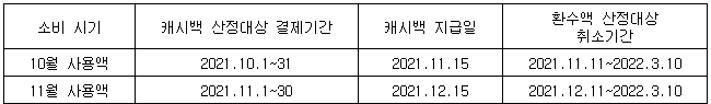 [표] 상생소비지원금 '캐시백' 지급·환수액 산정 대상 기간