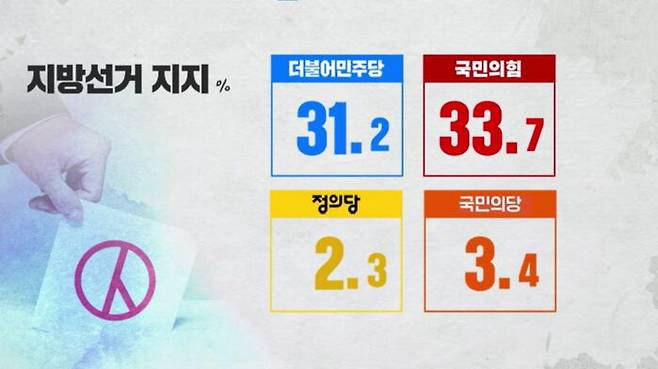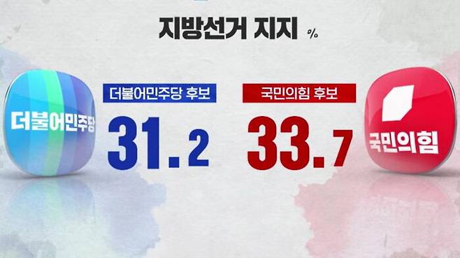 민주당 31.2%, 국민의힘 33.7%로 오차범위 내 경합이었습니다.