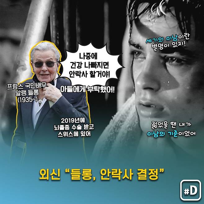 프랑스의 국민배우 알랭 들롱이 향후 건강이 악화하면 안락사를 하기로 결정했다는 외신 보도가 최근 나왔습니다.