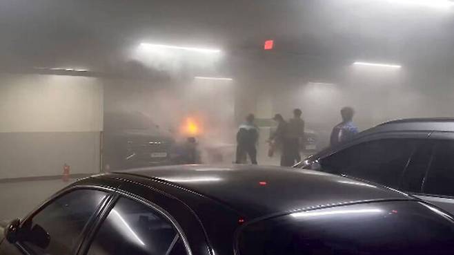 어제 저녁 6시 46분쯤 대구 동구 신천동 현대시티아울렛 대구점 지하 2층 주차장에 있던 차량에서 불이 났습니다.