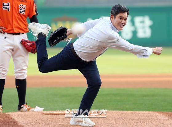 [포토]시구하는 정용진 부회장, '용진이형이 던졌다'