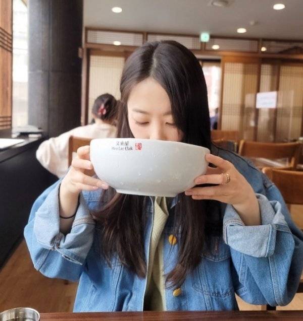 공개된 사진 속에서 박보영은 그릇까지 들고 냉면에 집중하고 있다.