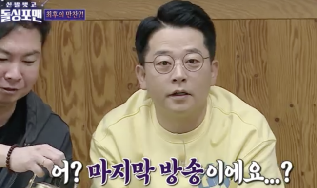 [OSEN=김수형 기자] ‘돌싱포맨’에서 김준호가 김지민과 열애소식을 발표한 가운데, 갑작스러운 제작진의 '만찬' 준비에 마지막 방송을 걱정하는 모습이 포착됐다.