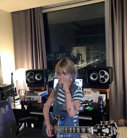 공개된 사진 속에서 지민은 머리를 양갈래로 따고 멜빵바지를 입은 삐삐스타일에 기타를 매고 자유롭게 음악을 즐기고 있어 눈길을 사로 잡았다.