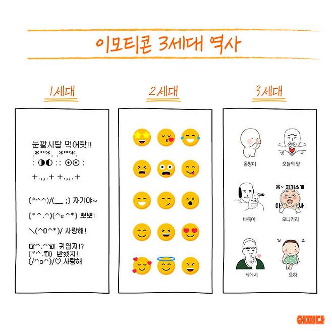 요즘은 빼도 박도 못하는 '라떼' 시절이지만 바야흐로 20여 년 전인 2000년대 초입, 서브 문화를 호령했던 인터넷 소설들의 주 언어가 텍스트를 활용한 이모티콘(^^, -_-, =_=)이었던 것을 생각하면 가히 장족의 진화라 할 만 합니다. 지금은 때와 장소, 상황까지 고려해 특정한 환경에서 적재적소로 쓸 수 있는 이모티콘들이 쏟아져 나오고 있죠.