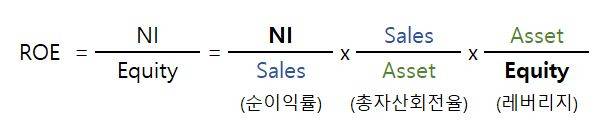 ▶ROE는 순이익률, 총자산회전율, 레버리지로 세분화 됩니다.