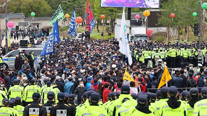 민주노총은 지난 13일 서울 종로구 종묘공원에서 경찰 추산 4천여 명(주최 측 추산 6천여 명) 규모의 미신고 집회를 진행했습니다.