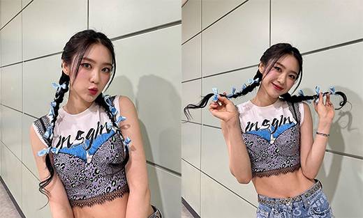 오마이걸 지호는 브레이드 헤어에 하늘색 리본을 함께 땋아 사랑스러운 헤어스타일을 완성했다. 데일리로 연출하기 좋은 브레이드 헤어지만, 조금 더 포인트를 주고 싶다면 지호처럼 룩에 맞게 톤온톤 스타일링을 선보이는 것도 좋은 방법.