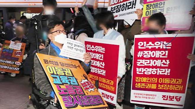 전장연은 "인수위는 전장연에서 제시한 2023년에 반영돼야 할 장애인 권리예산과 관련해서도 구체적인 답변을 하지 않았다"며 "기다려도 기본적인 장애인의 시민권도 보장되지 않는 비장애인만의 문명사회는 장애인에겐 비문명 사회일 뿐"이라고 꼬집었습니다.
