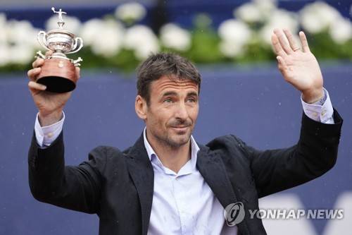 epa09899119 Spanish tennis player Tommy Robredo receives a tribute after retiring from professional tennis at Banc Sabadell's Barcelona Open Conde de Godo 2022 tennis tournament, in Barcelona, Spain, 20 April 2022. The Barcelona Open runs from 16 to 24 April. EPA/Alejandro Garcia