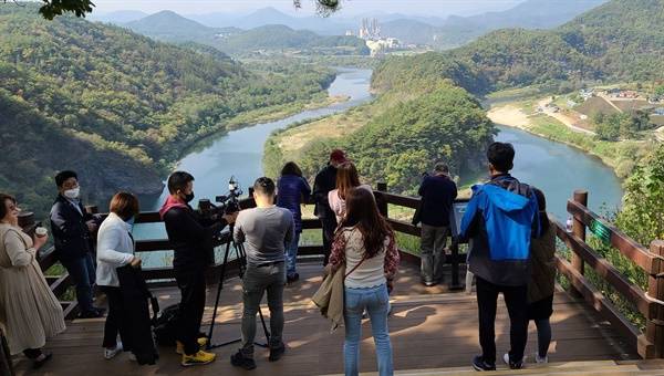 | ▲ 전국에서 찾아오는 관광객들로 북적이는 서강의 한반도지형 |