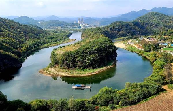 위 사진은 통일된 한반도를 상징하는 영월 서강의 한반도 지형이다.