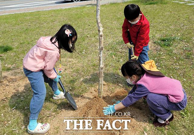 정부청사관리본부, 어린이들과 함께 '탄소중립 희망의 나무심기' [TF사진관]