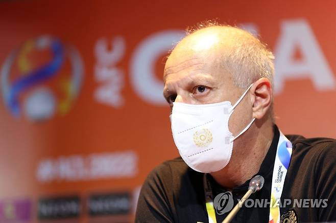 (서울=연합뉴스) 대구FC 알렉산더 가마 감독이 23일(현지시간) 태국 부리람 스타디움에서 우라와 레즈와의 2022 AFC 챔피언스리그 조별예선 경기를 앞두고 기자회견을 하고 있다. 2022.4.23 [한국프로축구연맹 제공. 재판매 및 DB 금지]