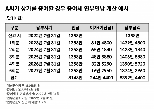 A씨는 아들이 증여세 낼 돈을 모을 때까지 상가의 증여를 마냥 미뤄야만 하는지 고민하던 중 2020년 10월 사망한 삼성전자 이건희 회장의 유족들이 12조원대의 상속세를 연부연납 제도로 2026년까지 6회에 걸쳐 분할해서 납부하기로 했다는 기사를 보게 됐다.