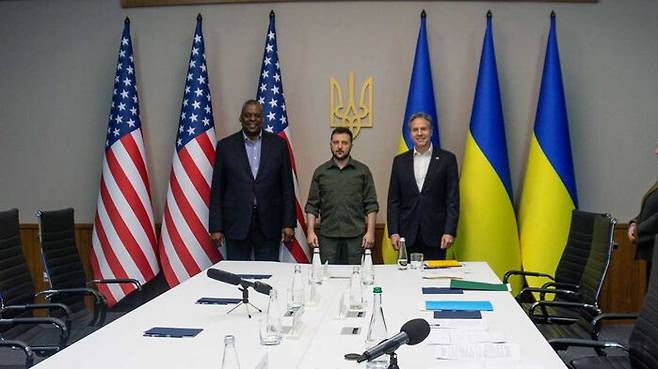 블링컨 미 국무장관과 오스틴 미 국방장관은 현지 시간 기준으로 24일 키이우를 방문해서 젤렌스키 우크라이나 대통령과 저녁 시간에 만난 뒤 25일 폴란드로 나온 걸로 파악되네요. 두 사람은 전쟁 후 키이우를 찾은 유럽 정상들처럼 폴란드에서 기차를 타고 우크라이나로 들어갔는데요, 우크라이나 영공은 피격 우려 탓에 사실상 항공기가 뜰 수 없는 상황이니까요.