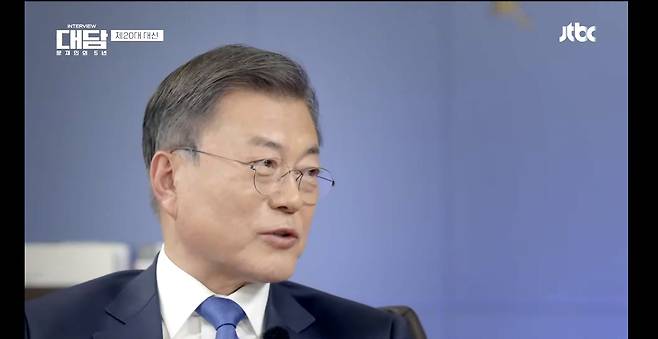 문 대통령은 25일 오후 8시 50분부터 방영된 JTBC '대담 문재인의 5년'에서 지난 대선에서 민주당 후보 패배의 가장 큰 요인을 묻는 말에 "우리 정부에 대한 평가도 작용했을 것"이라면서 이같이 답변했다.