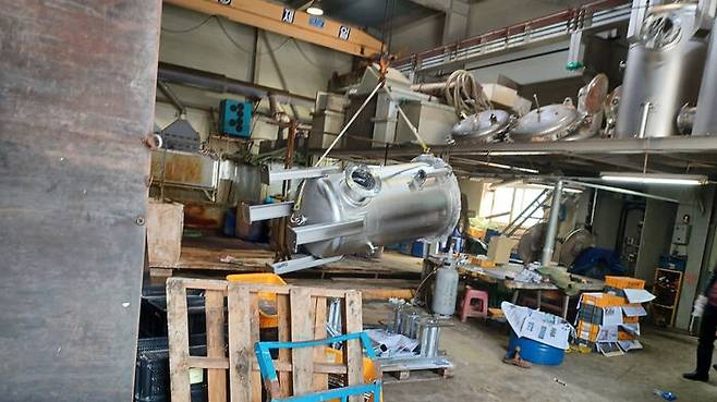 해당 탱크는 화장품 원료배합 장치로 이 공장에서 도금처리된 것으로 전해졌습니다.