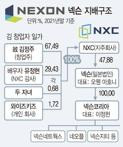 유 감사가 개인 최다 출자자인 점도 고려됐다. 유 감사의 NXC 지분율은 29.43%로, 자녀 2명의 지분까지 합치면 30.79%에 해당한다. NXC는 넥슨 지배구조의 정점에 있는 지주사로, 김 창업자(67.49%)와 유 감사 등 친족이 지분 100%를 보유한 가족회사다. 넥슨 그룹의 중간 지주사 역할을 하는 넥슨 일본법인 지분 47.4%를 직·간접적으로 보유하고 있다.