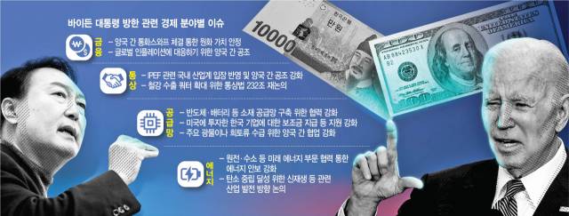 조 바이든 미국 대통령의 다음 달 방한은 윤석열 정부의 향후 5년은 물론 한국 경제의 미래를 좌우할 ‘거대 이벤트’가 될 것으로 전망된다. 양국 간에는 인플레이션 이슈와 연계된 통화 스와프 체결 외에 인도태평양경제프레임(IPEF)과 같은 통상, 반도체·배터리 등 미래 산업과 관련한 공급망 이슈 등 논의할 의제가 산더미다. 여기에 우크라이나 전쟁 장기화 등에 따른 에너지 수급 문제 해결, 탈탄소 드라이브의 속도 조절과 연계된 원자력발전 협력 등도 다뤄야 한다. 윤석열 대통령 당선인 측이 한미 동맹을 명실상부한 경제·과학·기술 동맹으로 업그레이드할 기회로 바이든 대통령의 방한을 활용해야 한다는 지적이 나오는 이유다.